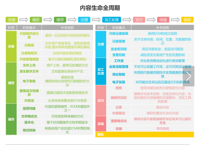随着时代发展,ECM诸多供应商的产品功能都在不断丰富壮大,在自身基础上管理更多类型的企业内容,向内容全生命周期拓展。