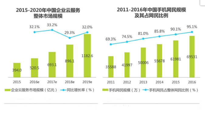 2016年云服务已度过炒作期,成为企业生产力工具,企业对内容管理的SaaS产品的接受程度进一步提升。截至2016年12月,我国手机网民规模达到6.95亿,较2015年增加7500万人,网民中使用手机上网的占比由2015年的90.1%提升至95.1%,提升5个百分点,移动互联网用户的工作场景向多元化发展,推动不同使用场景细化、企业内容管理的范围向更深更广扩散。
