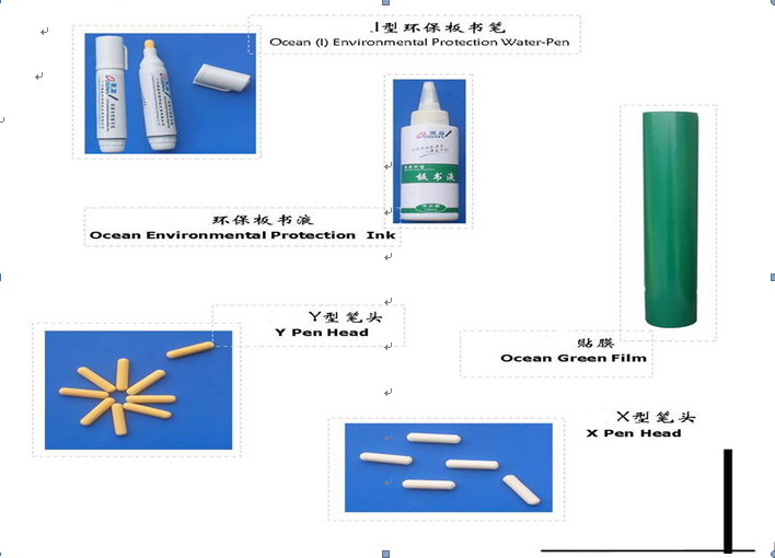 产品规划:产品分为板书笔、板书液、板擦、笔头、贴膜、清洗液,可根据客户需要对其现有黑板进行改造,确保客户以较低成本起用我们的产品并享受产品带来的人性化服务。