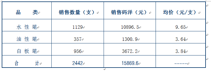 (注:该商场90%以上的业绩来自于图书零售,音像、文具只作为辅助业务,又因其地处滨江公园,不得交通之便,故在文具销售方面表现一般,以下数据主要作为价格参考)