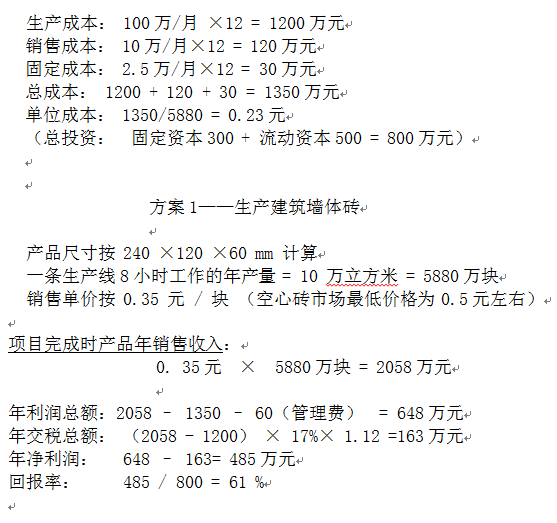 实现年生产能力——10~20万立方米(相当于5880~11760万块砌砖)