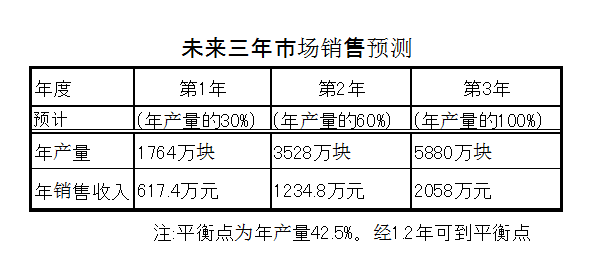 本项目投产以后、预计在3~5年内可达到50~70%的市场占有率。