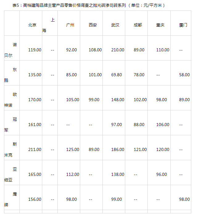 4、高档建陶产品的市场价格