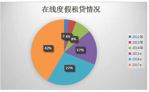 近几年来,民宿的整体份额虽然没有突飞猛进,但整体份额在稳步上升,2014年占市场份额的16%(690亿美元),2016年占市场份额的18%(880亿美元)。