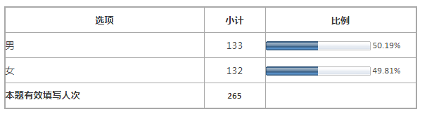 本次问卷有效样本数为265份,其中,关注房产信息的性别比例相差不多,各占差不多一半,如图1。年龄结构的多在20-30之间的年轻群体,如图。