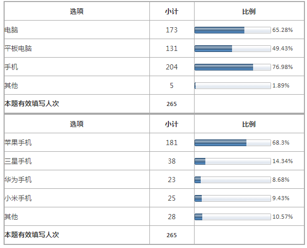 •关注房产信息所用的设备:大多数人希望能通过手机设备查看房产信息。其中,使用苹果手机查看的人数占半数以上。