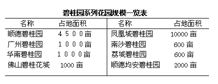 碧桂园企业于1992年成立于广东顺德,以开发顺德碧桂园、广州碧桂园、华南碧桂园、碧桂园凤凰城、荔城碧桂园、均安碧桂园、碧桂花园、碧桂豪园、碧桂花城、碧桂园东苑、碧桂园西苑、碧海名轩、凤南花园等十余个超大型高尚社区。
