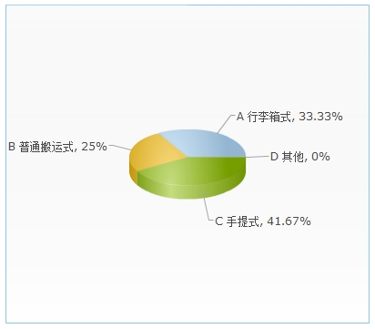 在本次调查中我们发现,认为行李箱式的更方便的占总比例的33.33%,普通搬运式的占总比例的25%,手提式的占总比例的41.67%。