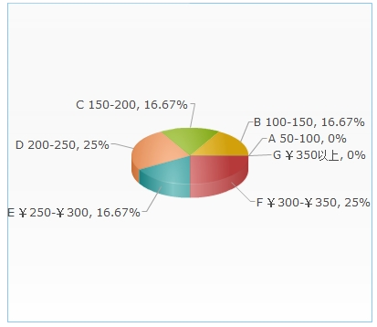 若购买家用洗车机心理价位的调查中,100--150元和150--200元以及250--300元之间的都是为16.67%,200--250元和300--350元之间的为25%。