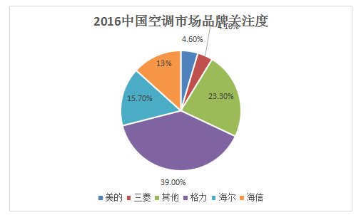 2016年,中国空调市场市售产品数量共计2140款,分属26家主流厂商。从品牌关注情况来看,格力、海尔和海信占据关注榜前三甲位置不变,依旧把持着市场接近七成的消费者关注度。在产品类型方面,本月变频空调的关注占比突破六成,而立柜式空调的关注占比则有小幅上涨。另外,消费级依然重点关注三级能效和冷暖型空调产品,同时,市场关注重心有向中高端价位段转移的趋势。