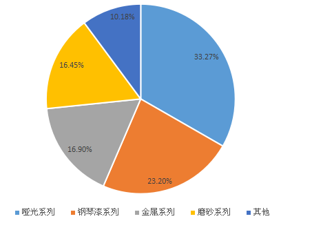 用户在吸尘器材质的选择上没有特别的偏好,33.27%的用户喜欢哑光系列,23.2%的用户喜欢钢琴漆系列,16.9%的用户喜欢金属系列,16.45%的用户喜欢磨砂系列。