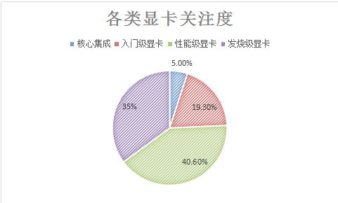 影音娱乐本市场上,性能级显卡产品竞争力相对最高,关注度达到42.7%。发烧级显卡排在第二位,所占关注份额为33.5%,其它类型显卡产品关注度均在20.0%以下。关注比例变化方面,本月性能级显卡产品关注度上涨2.1%,入门级与发烧级显卡均有小幅下滑。