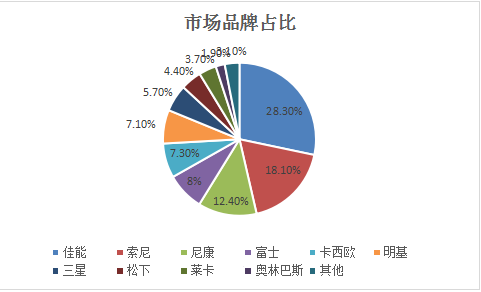 消费级市场其实相对整个相机市场还是一个比较大的比例,不过在品牌格局方面与整个相机市场较为相似,一些厂商依靠特殊的产品取得了比整体市场高1-2位的排名,比如索尼、卡西欧、明基均是如此。