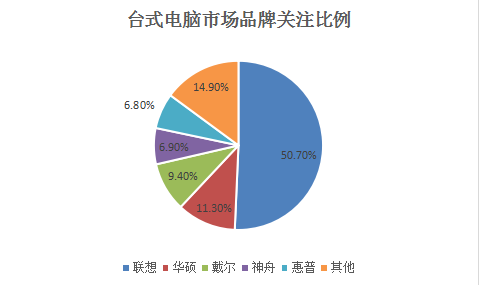 10月台式电脑市场上,联想品牌关注度相对最为集中,所占份额达到50.7%。华硕与戴尔处于第二阶梯,两家厂商的用户关注度分别为11.3%和9.4%。神舟与惠普分列第四、五名,品牌关注度较为接近,占比为6.9%和6.8%,其它品牌所占关注份额相对较低,均不足5.0%。