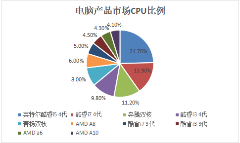 具体系列方面,本月英特尔 酷睿i5 4代系列产品受用户青睐,关注度达到21.7%。英特尔 酷睿i7 4代系列与奔腾双核系列处于第二集团,关注比例为13.9%和11.2%。整体来看,英特尔处理器占据优势地位,AMD产品关注度相对较低。以上就是51调查网带来的调查报告,如需了解更多请登录我要调查网查看。
