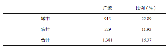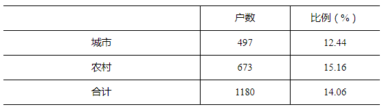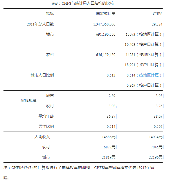 按照特定地区是城镇地区还是农村地区来计算城市人口比例,1则计算出的CHFS中城市人口比例为51.4%,与国家统计局公布的指标非常一致。