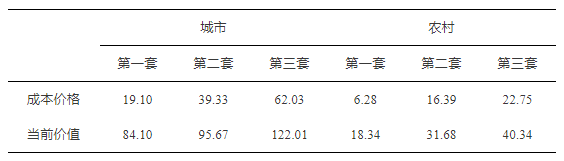 表9揭示了住房成本价格和当前价值的差异较大,表明住房受益非常可观