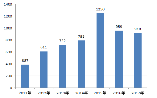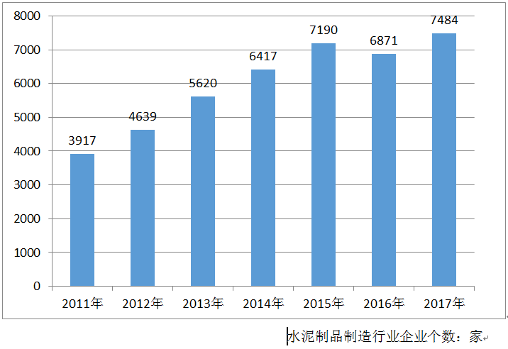 2011-2017年水泥制品制造行业企业个数