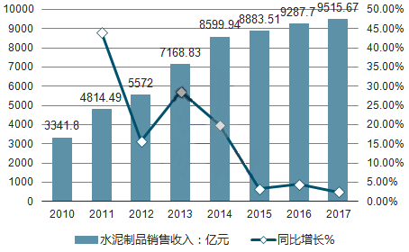 2010-2017年水泥制品制造行业销售收入及增长