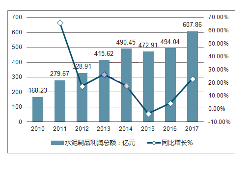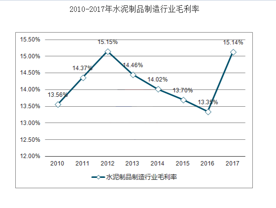 数据显示,2017年,水泥制品制造行业产品利润总额607.86亿元,同比增长23.04%;毛利率及销售利润率分别达到15.14%、11.85%,均较上年提高1.75个百分点、1.63个百分点。