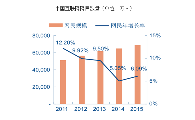 截至 2015 年 12 月,我国网民规模达 6.88 亿,互联网普及率为 50.3%,较 2014 年底提升了 2.4%。另一方面,手机网民规模达 6.20 亿,网民中手机网民占比由 2014 年的 85.8%提升至 90.1%。
