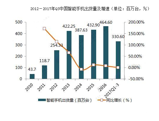 受益于半导体、触控、指纹识别、摄像头等技术的不断进步,智能手机逐渐成为人们日常生活的刚需,目前已基本完成了对功能机的替换。2017 年 1-9 月,中国智能手机出货量占国内整体手机市场的 95%,智能手机进入存量博弈时代。