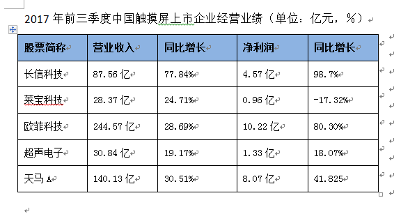 2017年前三季度触摸屏企业经营现状:几乎都实现了大幅盈利