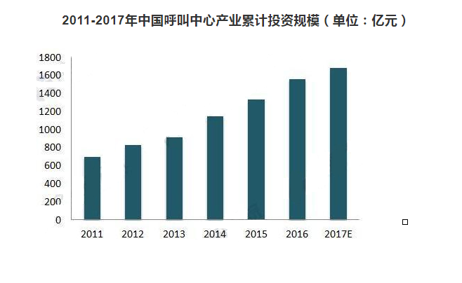 呼叫中心的目标市场最初集中在电信、金融、政府及公用事业等大型企业或用户集中的行业,随着各个行业服务水平的提升、品牌管理的加强以及营销体系的完善,包括速递物流、电子商务、广电、能源、教育、媒体、旅游、餐饮、零售、实业制造、医药健康、政府及公共事业等众多行业对呼叫中心的需求越来越大。同时,随着其服务模式灵活性的提高,中小企业也有更强意愿利用呼叫中心提高服务质量。2011年以来,中国呼叫中心产业累计投资规模逐年增长。截至2016年底,中国呼叫中心产业累计投资规模已达1557亿元。
