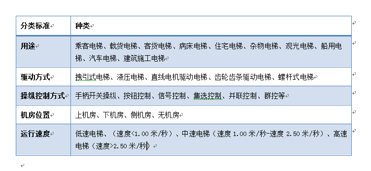 电梯种类众多,按照不同标准划分,电梯可进行如下分类: