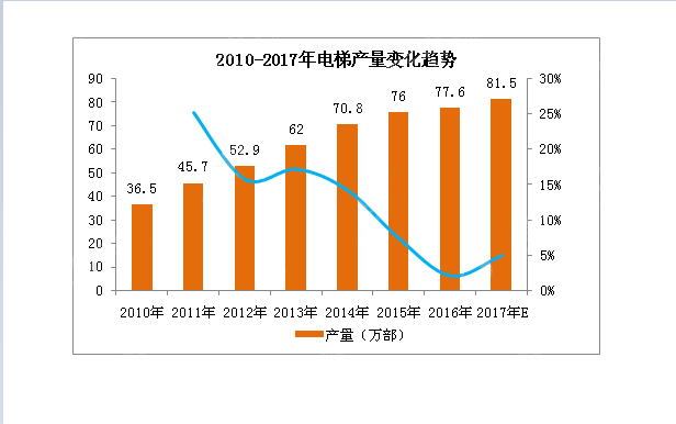 根据中国电梯协会的统计数据,近十年来,持续快速的经济增长也使得我国电梯制造业步入高速发展阶段,电梯产量从2006年的16.8万台上升至2016 年的77.66万台,年复合增长率约16.53%。目前我国电梯整机产品、配件产品的产销量均居世界第一,电梯产量居世界总产量的一半以上,中国已经成为全世界最大的电梯市场。电梯行业的高速增长同时带动了配套零部件行业快速发展,部分国产电梯零部件的技术、质量水平已经处于世界领先地位,特别在中低速电梯领域,零部件基本实现国产化。