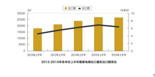 当前,全球经济依旧处于深度调整之中,总体复苏乏力,需求不振,前景仍不明朗;国内经济面临下行压力,进出口总值下降。中国海关总署发布数据显示,2016年上半年中国货物贸易进出口总值11.13万亿元,同比下降3.3%。其中,出口6.4万亿元,同比下降2.1%。受大环境影响,电梯出口增速亦再度回落。
