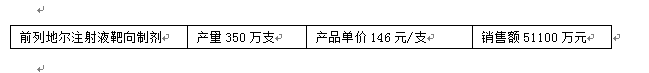 合资公司产品达产年每年可生产350万支。达产年可实现利税7500万元人民币。