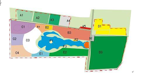 酒店式湖景别墅二期占地30亩,环绕xx生态园内人工湖的南侧,在生态园图示F3处。(项目位置见下图)